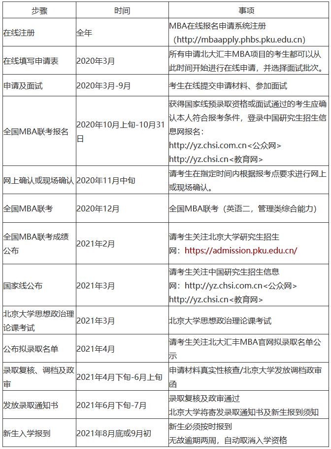 北大匯豐MBA項目2021年招生時間表