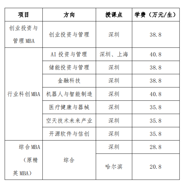 2024年工商管理碩士(MBA)項目計劃招收創(chuàng)業(yè)投資與管理MBA、行業(yè)科創(chuàng)MBA和綜合MBA(原精英MBA)三個項目,具體方向、授課點、學費如下: