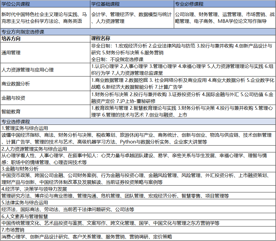 備注:以上課程體系可能根據(jù)實(shí)際教學(xué)情況略有調(diào)整,請(qǐng)以MBA教學(xué)部當(dāng)年安排為準(zhǔn)。