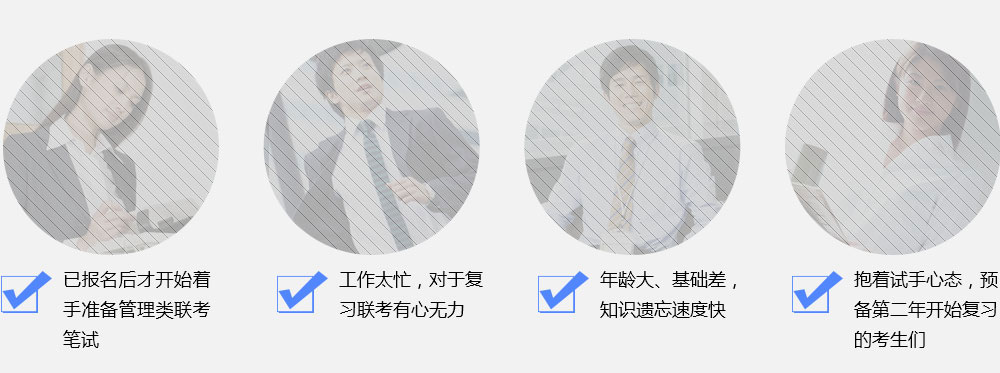 | 模考階段 | 英+數(shù)+邏+寫作 | 1、考前重點難點精講,實戰(zhàn)查漏補缺; 2、應(yīng)考技巧強化訓(xùn)練并整理易錯考點; 3、高分技巧訓(xùn)練,模擬考場檢驗成果; 4、調(diào)整復(fù)習計劃,調(diào)整心態(tài),身體保持良好狀態(tài)。 |